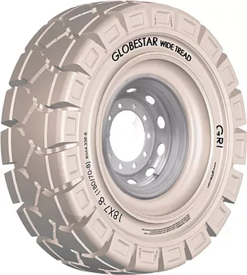GRI Globestar WT представляет собой цельнолитую шину, сферой применения которой выступают погрузчики вилочного типа. Модель имеет достаточно широкое контактное пятно, обеспечивающее повышенную грузоподъемность и улучшенные тяговые свойства на различных поверхностях.